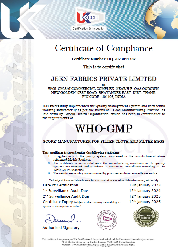 Established in 2004 under the leadership of Mr. Vijay Joshi, a seasoned expert with over two decades of industry experience, JEEN FABRICS PVT. LTD. has been dedicated to delivering premium filtration solutions. Our commitment to excellence ensures that we meet the growing market demand with unmatched quality and precision.